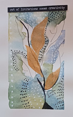 To design this min page I played with a variety of watercolors and added some lines and patterns with fine line markers. I added metallic watercolor leaf shapes.